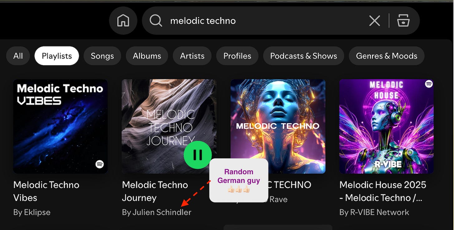 Assess real users briefly: Is this a real person, or is there some commercial intent? There are a lot of record labels that create playlists. Many are not so great. Some are