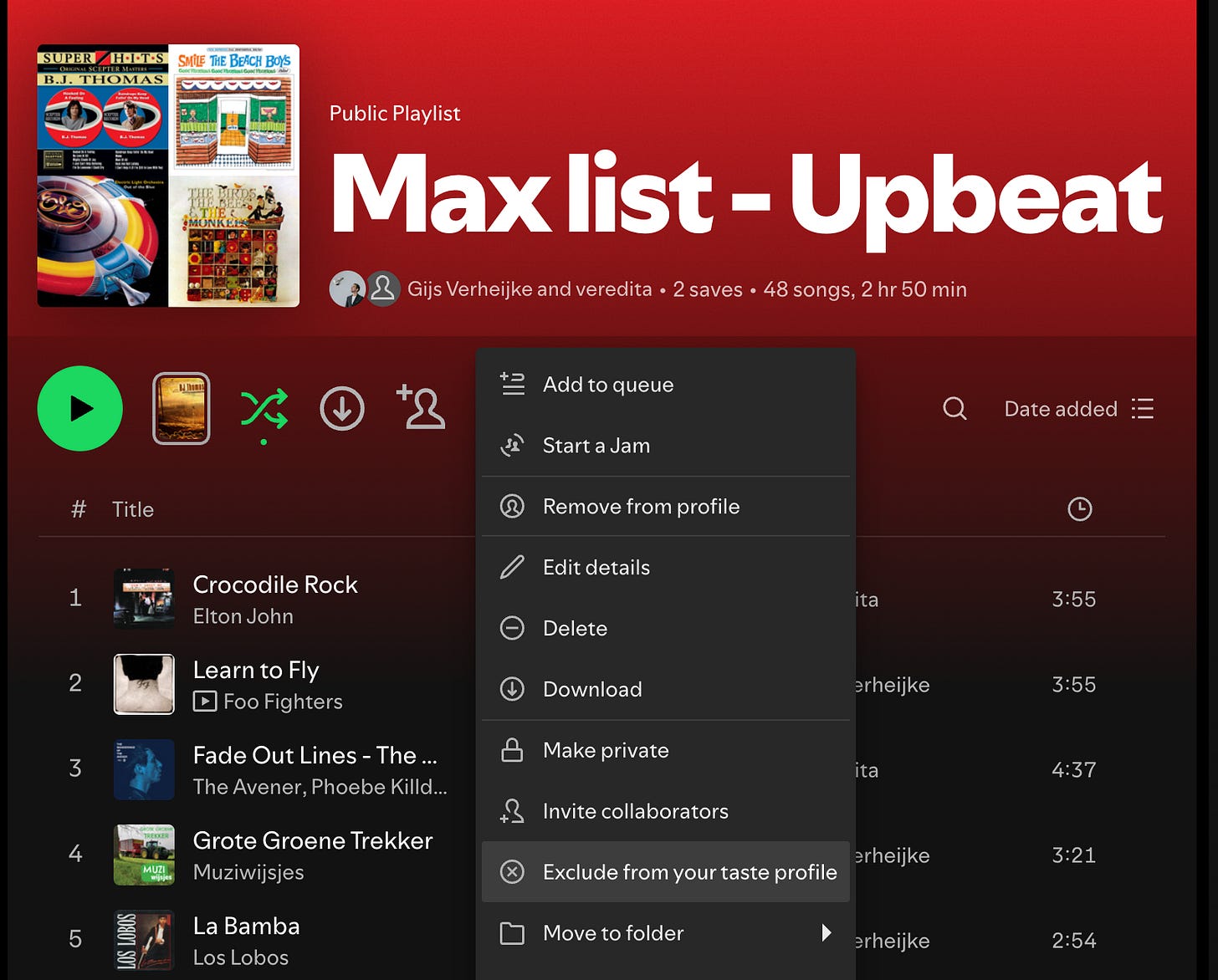 So instead of searching ‘Baby shark’ and letting Spotify run with it, take 5 minutes to create a couple of playlists with your kids’ favorite kids songs, and then exclude them from the algo.